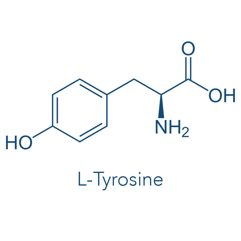 L-Tyrosine is a form of the amino acid Tyrosine. It is a protein building block and is found in all tissues of the human body. It is utilized by the thyroid gland to produce thyroid hormones and improves mental performance, increasing energy and in treatment of depression.
